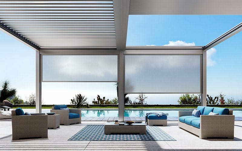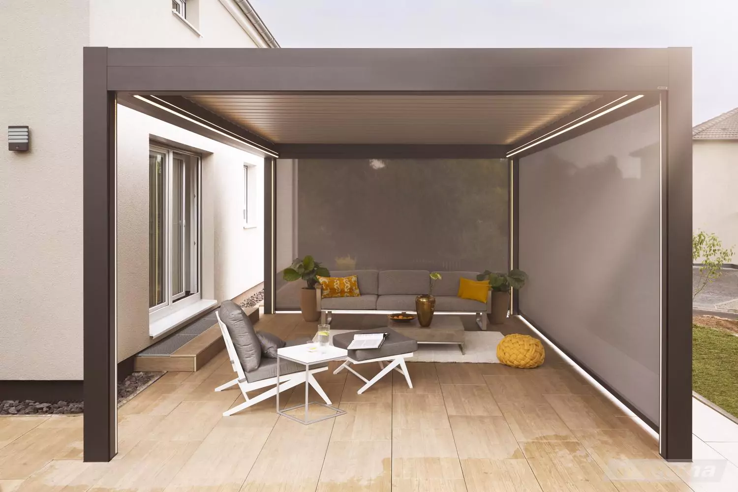 Zipp pərdə sistemi həm günəşin istisini, həm də küləyin və tozun təsirini azaldır. Açıq havada dincəlmək və ya işləmək üçün ideal şərait yaradır.